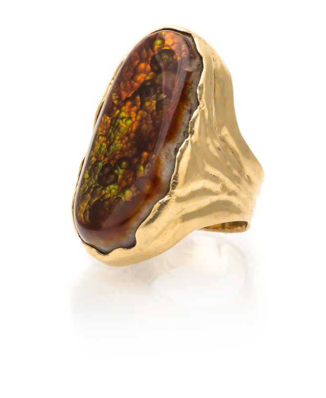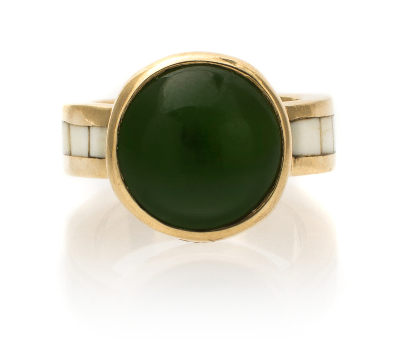 A Collection of 14 Karat Yellow Gold, Jade, Fire Agate and Hardstone Rings, Theodore Drendel,