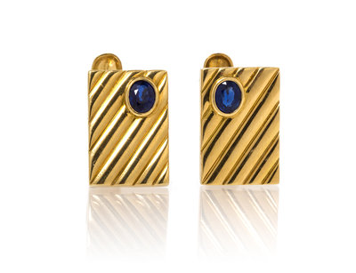 A Pair of 18 Karat Yellow Gold and Sapphire Cufflinks.