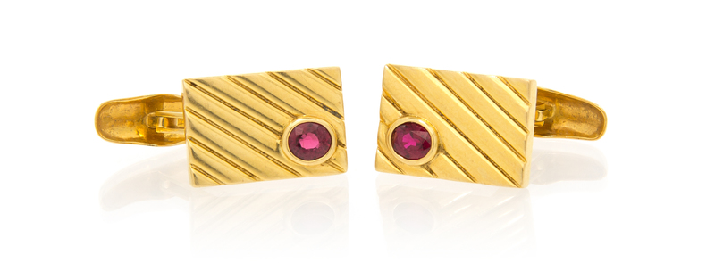 A Pair of 18 Karat Yellow Gold and Ruby Cufflinks,