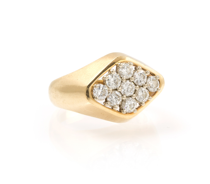 containing nine round brilliant cut diamonds weighing approximately 1.17 carats total.Stamp: 14K Gb.