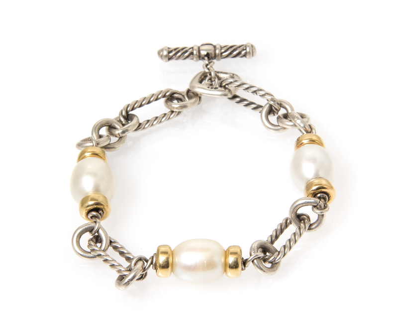 A Sterling Silver, 18 Karat Yellow Gold and Cultured Pearl Bracelet, David Yurman,