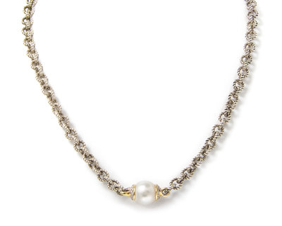 A Sterling, 18 Karat Yellow Gold, Cultured Pearl and Diamond Necklace, David Yurman,