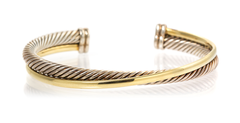 A Sterling Silver and 18 Karat Yellow Gold Crossover Cuff Bracelet, David Yurman,