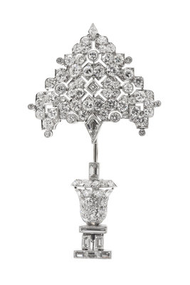 An Art Deco Platinum and Diamond Topiary Motif Jabot Brooch,