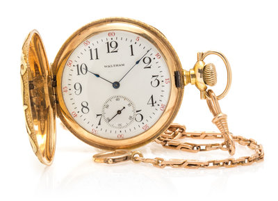 A 14 Karat Tri-Color Gold Hunter Case Pocketwatch with 14 Karat Fob Chain, Waltham,