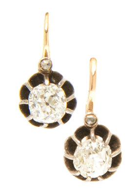 containing two old mine cut diamonds weighing approximately 0.70 carat total and two rose cut diamonds. Stamp: (partially obscured hallmark).