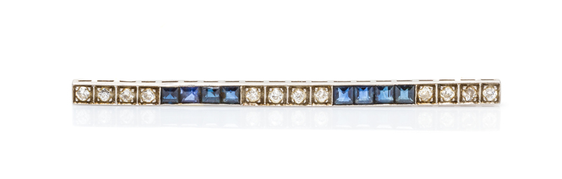 An Art Deco Platinum, Diamond and Sapphire Bar Brooch,