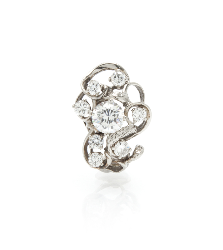 containing seven round brilliant cut diamonds weighing approximately 1.02 carats total and one round brilliant cut cubic zirconia.Stamp: 14K.