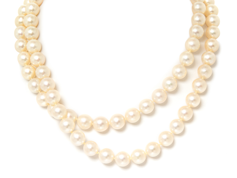 consisting of 82 pearls measuring approximately 8.51-8.95 mm in diameter strung knotted in a continuous style.