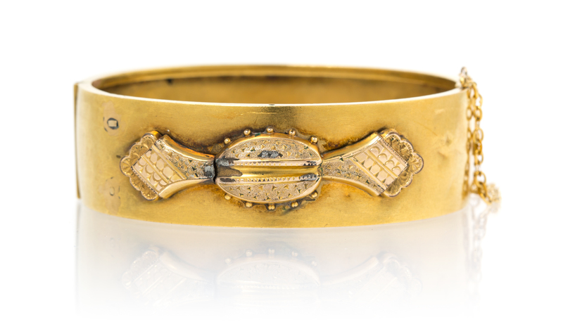 measuring approximately 20.00 mm in width, with applied rolled gold central decoration.