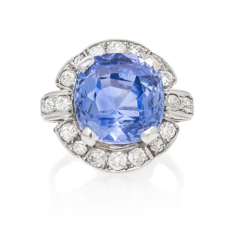 An Art Deco Platinum, Natural Ceylon Sapphire and Diamond Ring,