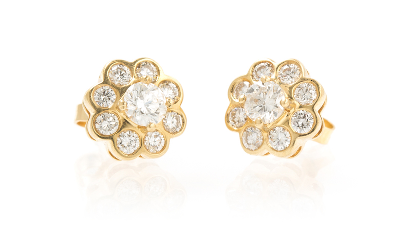 A Pair of Yellow Gold and Diamond Cluster Earrings,