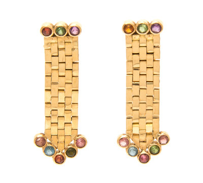 A Pair of Yellow Gold and Multi Gem Earclips,