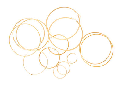 one pair measuring approximately 62.00 mm in outer diameter, two pairs measuring approximately 51.00 mm in diameter, one pair measuring approximately 35.00 mm in diameter, one pair measuring approximately 21.00 mm in diameter and three single hoop earrings.Stamp: 14K.
