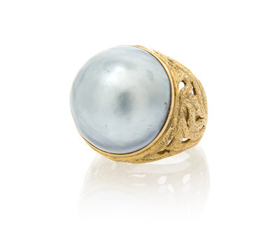 containing one gray mabe pearl measuring approximately 20.00 mm in diameter.