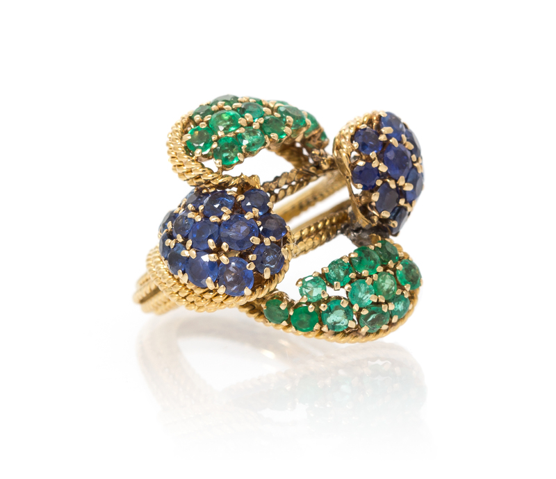 An 18 Karat Yellow Gold, Sapphire and Emerald Ring Jacket, Circa 1960,