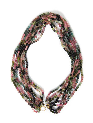 A 14 Karat Yellow Gold and Multi Strand Tourmaline Torsade Necklace,