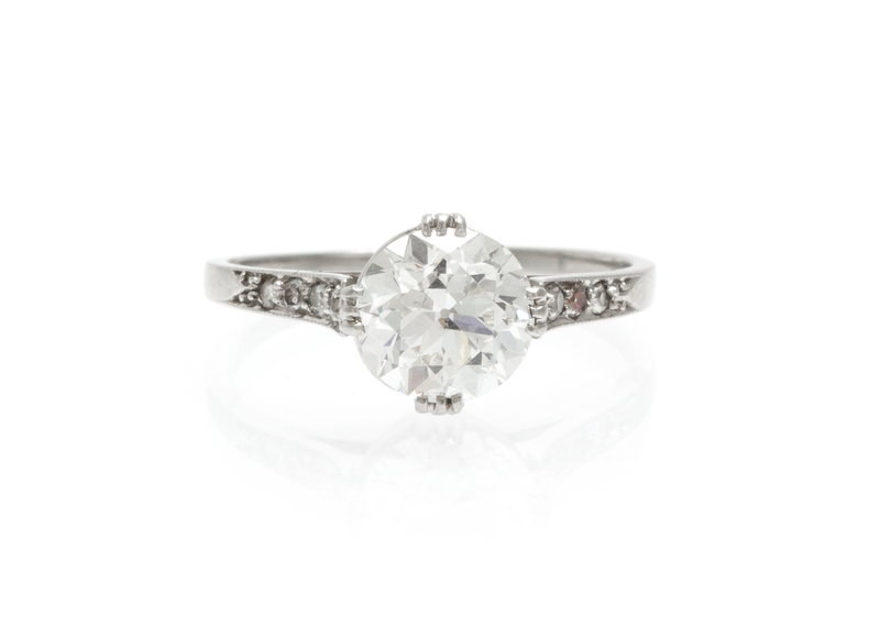 containing one old European diamond cut weighing approximately 1.40 carats and eight single cut diamonds weighing approximately 0.08 carat total.