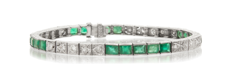 An Art Deco Platinum, Emerald and Diamond Bracelet,
