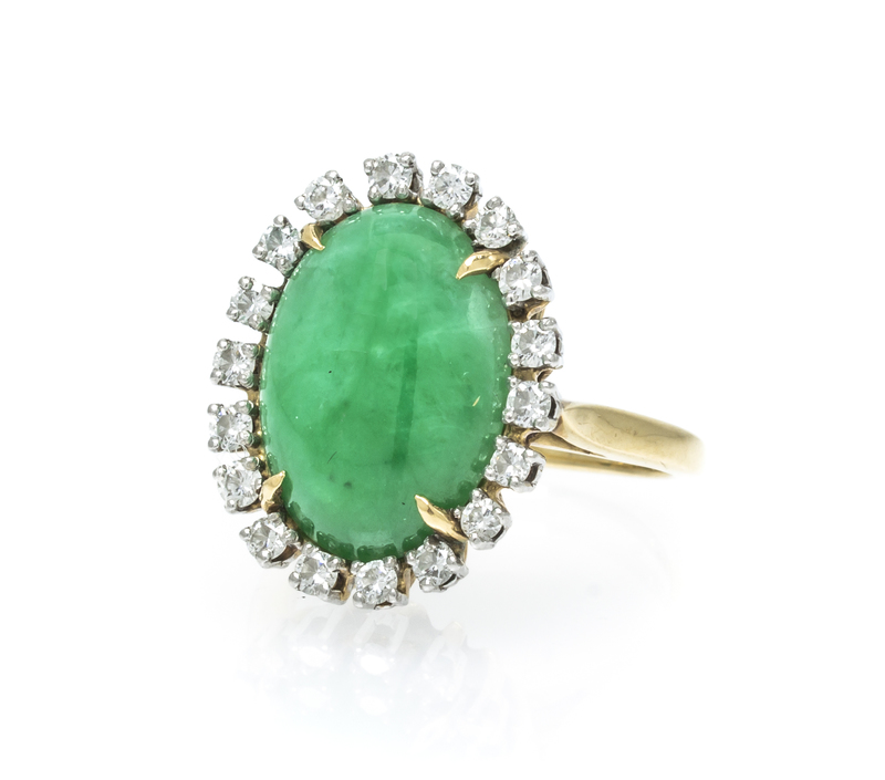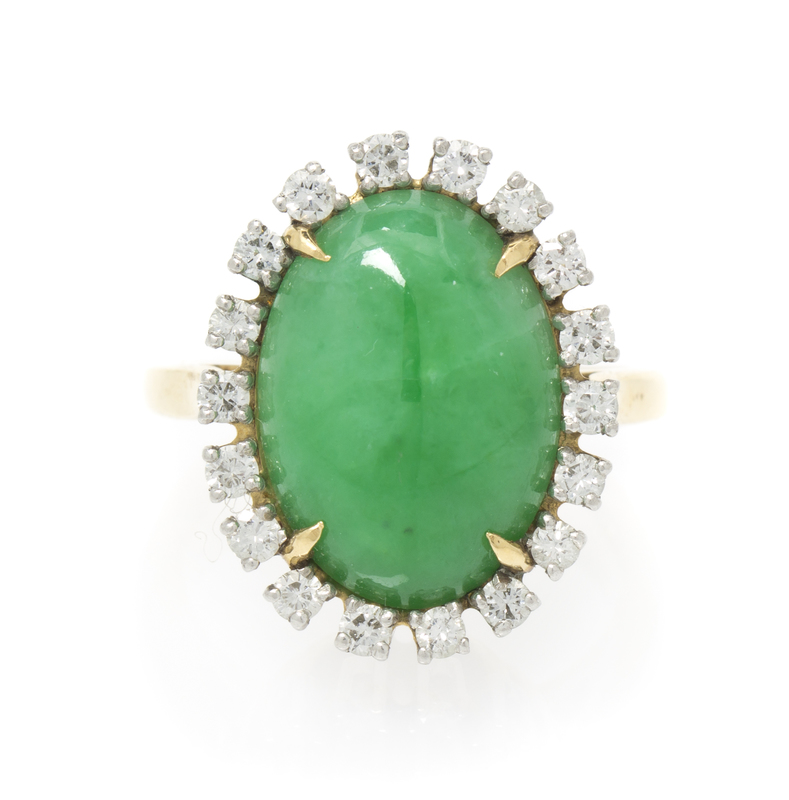An 18 Karat Yellow Gold, Platinum, Jade and Diamond Ring,