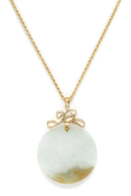 consisting of a jade disc pendant measuring approximately 46.00 mm in diameter suspended from a rope chain.
