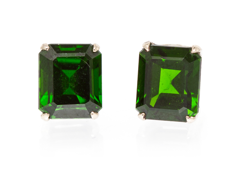 containing two octagonal step cut chrome diopside measuring approximately 7.65 x 6.51 x 4.63 mm.