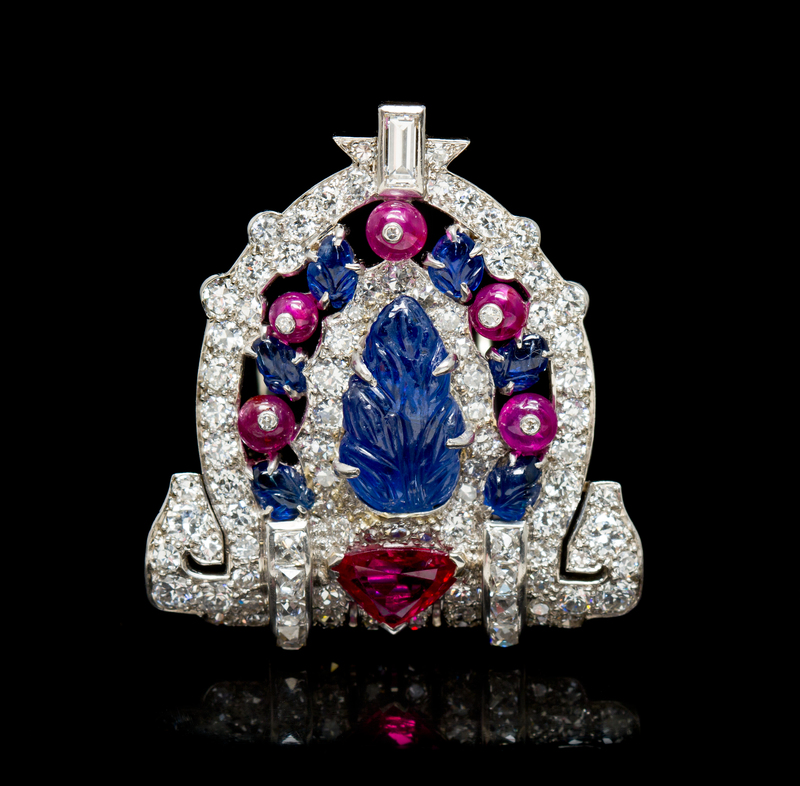 A Fine Art Deco Platinum, Sapphire, Ruby and Diamond Dress Clip,