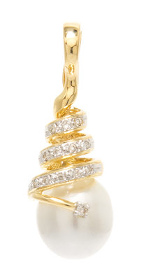 An 18 Karat Yellow Gold, Cultured Pearl and Diamond Pendant.