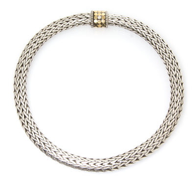 in a woven link design with embossed clasp.Stamp: 925 18K (John Hardy Maker's mark).