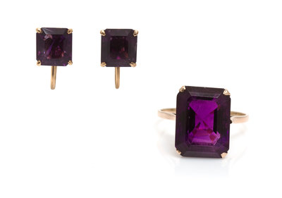 A Vintage Yellow Gold and Amethyst Demi Parure,