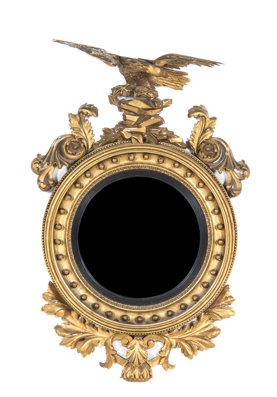 having an eagle form finial above a circular convex plate further set with spherical decoration.