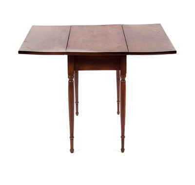 having a rectangular top over two rectangular leaves, raised on turned tapering legs.
