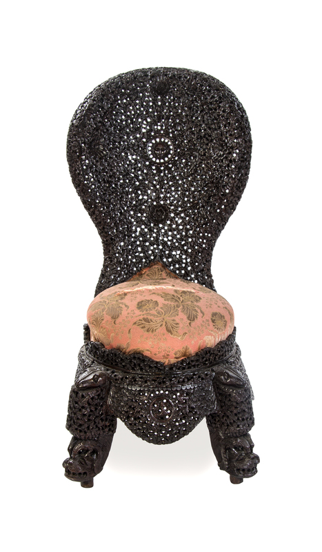 An Anglo-Indian Style Carved Hardwood Side Chair,