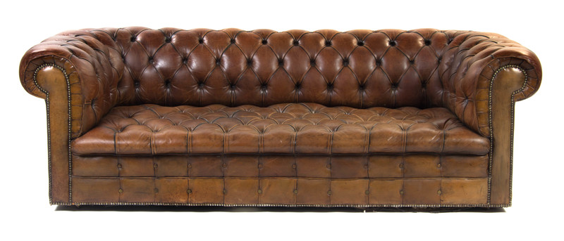 having a button-tufted back, arms and seat.