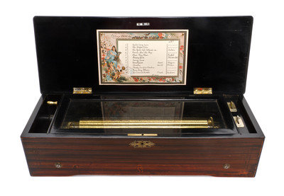 A Swiss Marquetry Cylinder Music Box,