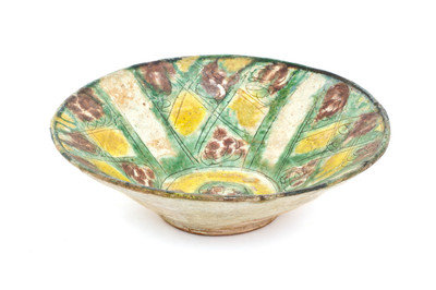 A Persian Style Polychrome Enamel Earthenware Bowl,