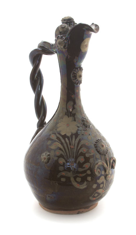 of baluster form, having a spiral twist handle mounted to the baluster form body painted to show floral sprays.