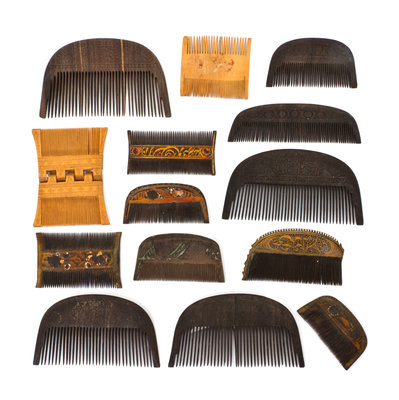 Fourteen Middle Eastern Carved Wood Hair Combs,
