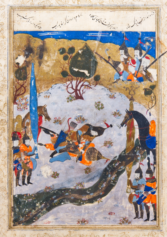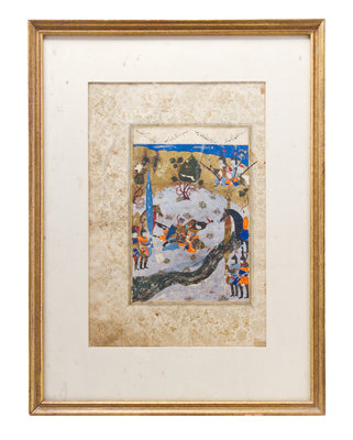 depicting a scene from Shahnama, framed.