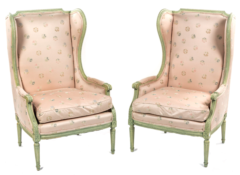 A Pair of Louis XVI Style Painted Bergeres,