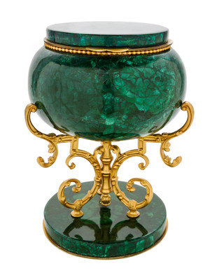 A Louis XV Style Gilt Metal and Simulated Malachite Box,