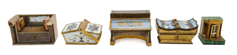 comprising a casket, a two-part basket and others, three with reverse painted glass panels.