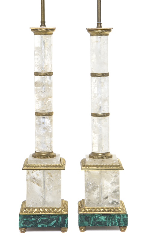 A Pair of Empire Style Rock Crystal and Malachite Lamps,