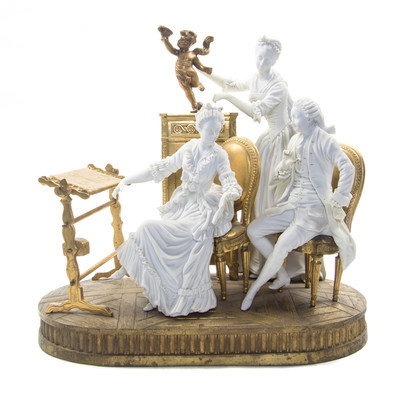 A French Gilt Bronze and Sevres Style Bisque Porcelain Figural Group,