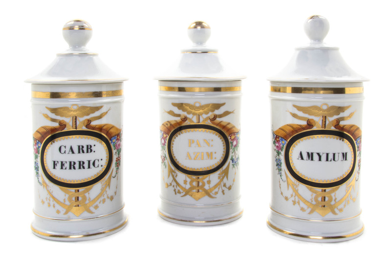 Three Continental Porcelain Apothecary Jars,