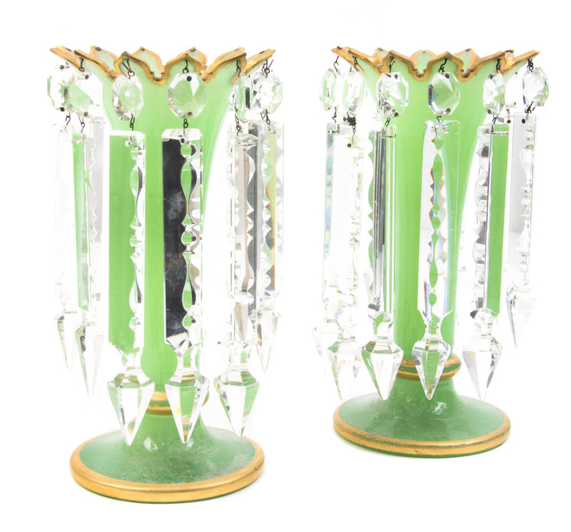 each having a floriform rim hung with prisms.