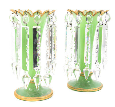 A Pair of Bohemian Green Glass Vases,