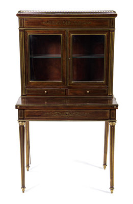 A Russian Empire Style Brass Mounted Mahogany Secretary Bookcase,