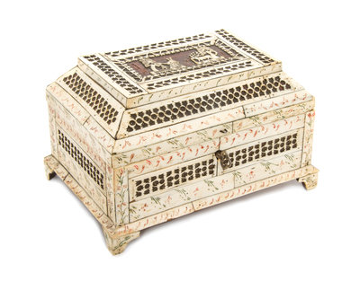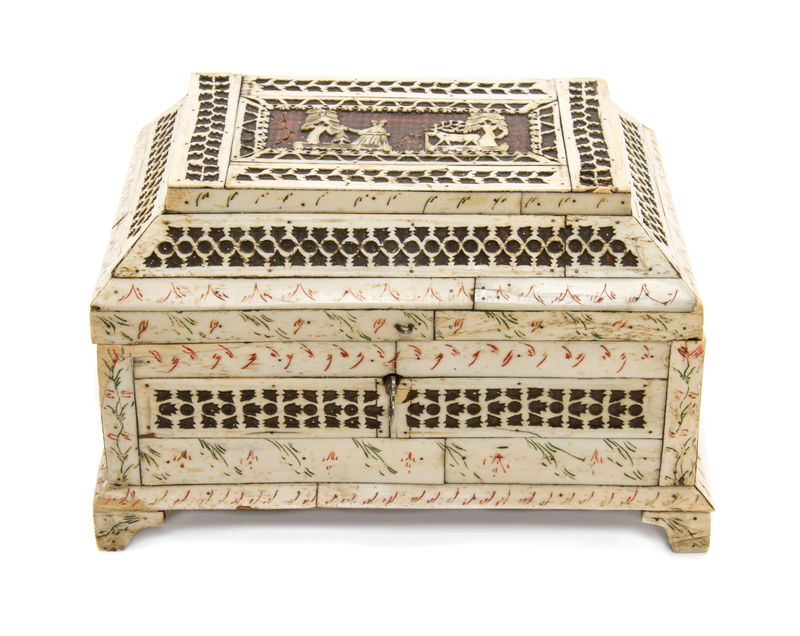 A Russian Bone Veneered Table Casket,