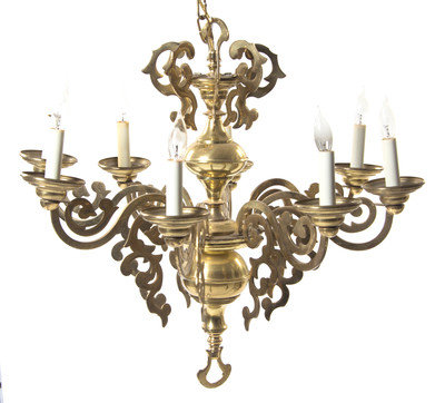 A Dutch Baroque Style Brass Eight-Light Chandelier,
